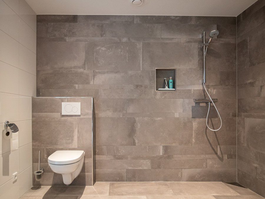 - badkamer met douche, toilet, wastafel en wasmachine plus wasdroger