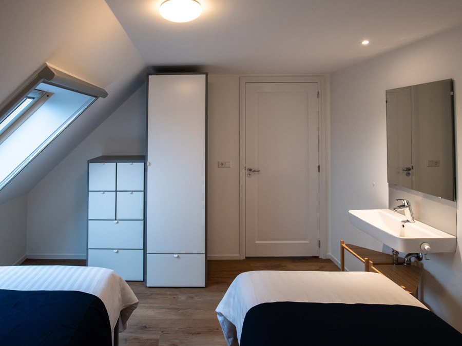 - derde slaapkamer met 2 eenpersoonsbedden (90 cm x 210 cm) en wastafel